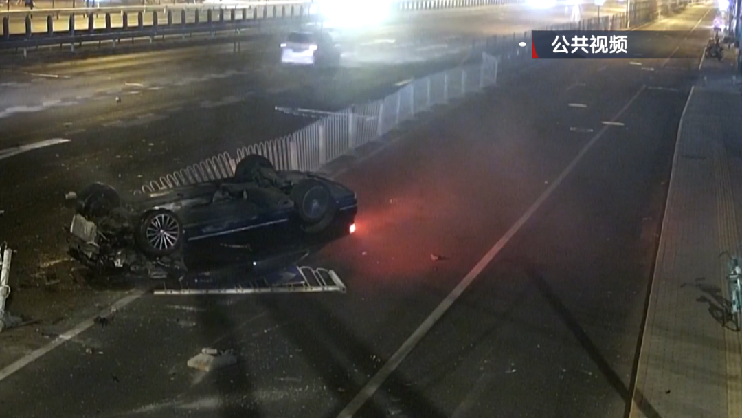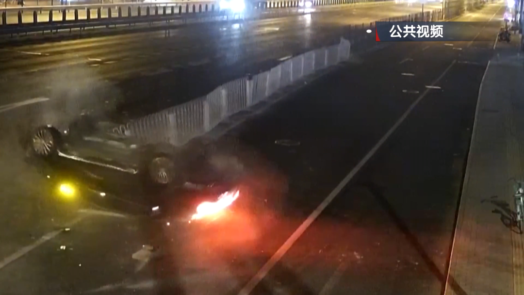 凌晨4点多,北京街头一轿车失控,撞翻一连串的护栏后,四轮朝天翻倒在地,究竟是怎么一回事?